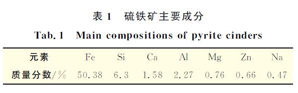 原料取自于安徽某硫酸廠的硫鐵礦燒渣,在105℃的烘箱干燥2h,經(jīng)球磨機研磨后過75μm孔徑篩分,放入恒溫干燥器中裝袋備用.硫鐵礦燒渣進行消解,并對酸溶液稀釋后,采用ICP-OES測定樣品中多種元素含量。