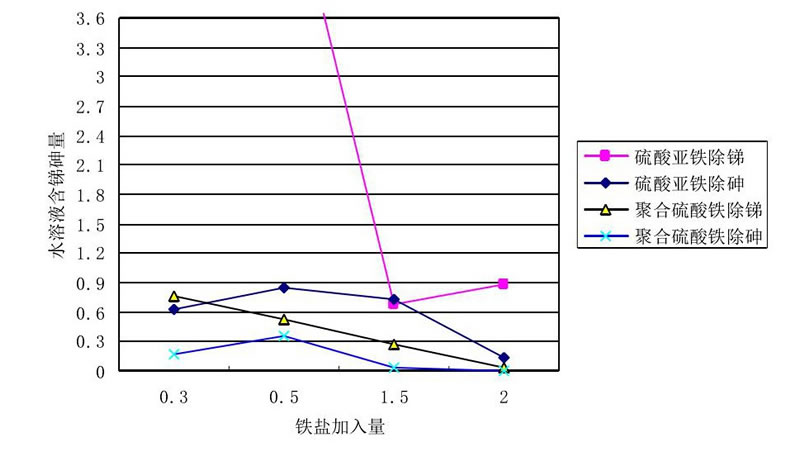 圖1 加入不同鐵鹽除銻砷試驗(yàn)結(jié)果