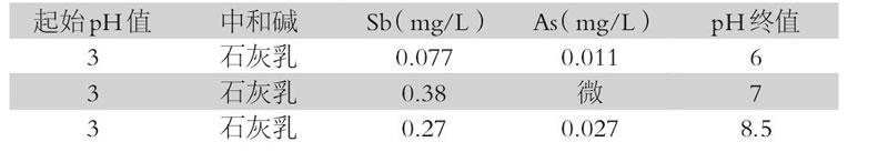 用NaOH調(diào)節(jié)廢水p H值, 并定量投加石灰的方法處理廢水。在p H為6-9范圍內(nèi), p H值對(duì)水溶液中銻砷去除的影響不大。