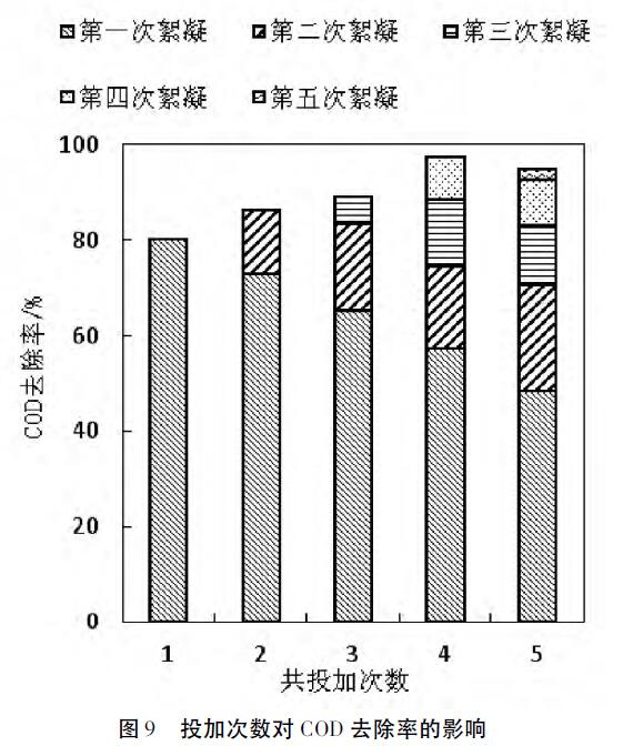 2.3.4投加次數(shù)對氧化處理效果的影響